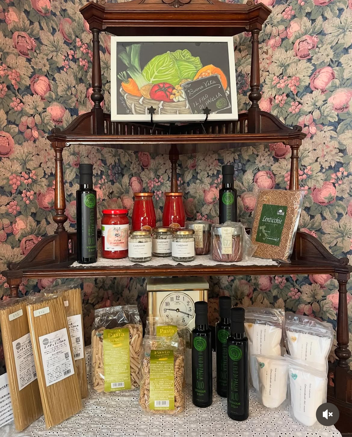 オリーブオイルの販売。木工作品の展示